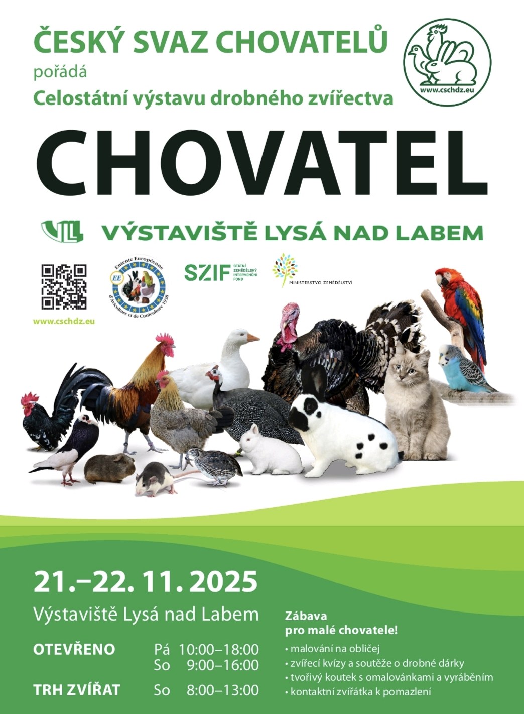 V pátek 21. 11. a v sobotu 22. 11. proběhne celostátní výstava drobného zvířectva v Lysé nad Labem.